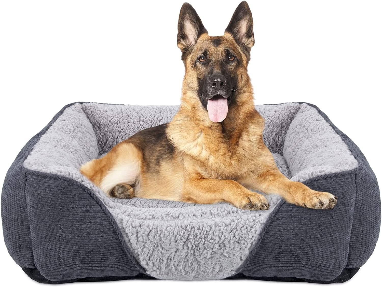 • Comfortable Surface: The surface of the dog beds is high density lamb fleece, it is soft and self-heating in winter, resist water like dog sweat or urine and no odor remains, lamb fleece is closer to the dog’s skin, let dogs quickly relieve anxiety and fall asleep, just like a mother’s embrace. The outer striped corduroy design makes the extra large dog bed more wear resistant and breathable, suitable for a seasons of the year.